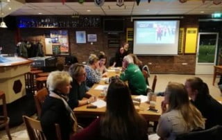Tot voor een jaar voetbalde Roderik Lamberts (48, Maasbree, vader van twee meiden), in het vijfde elftal van MVC ’19. Op dat moment had hij al zijn nieuwe liefde gevonden in de sport: de triatlon. „Ik heb veertig jaar gevoetbald en heb dat lang gecombineerd met tennis. Op m’n veertigste schreven we ons met een paar vrienden in voor de Zevenheuvelenloop. Dat rennen beviel. Op een gegeven moment heb ik er een racefiets bijgehaald en deed ik met een team van het werk mee aan de duatlon in Horst. En toen vroeg een collega: waarom probeer je niet eens een triatlon? Kwam het zwemmen er dus bij. Vijfhonderd meter lukte nog net. Na twee jaar ben ik zwemles gaan volgen. Technisch kan het nog steeds beter, maar nu houd ik het wel langer vol.” Lamberts is typisch een gevalletje van meer, meer, meer. „In het begin moest het lichaam wennen aan het duurwerk. Het heeft enkele jaren moeten harden. Hoe ouder ik word, hoe fanatieker. Ik doe inmiddels ook mee aan trailruns en marathons. Met voetballen trainde ik hooguit twee keer en had ik op zondag een wedstrijd, nu zwem ik tweemaal, ren ik drie keer en fiets ik één à twee keer per week.” De kleedkamerhumor en derde helft in de voetbalkantine mist hij wel. Nu hij individualistischer met sport bezig is, ziet hij het meer als een avontuur. Stemt er zelfs de vakanties met het gezin op af. Dit jaar nog stopte Lamberts op de terugreis vanuit Italië voor een triatlon in Zuid-Duitsland. „Zwemmen in een kristalhelder bergmeer, heerlijk! En in het fietsonderdeel hadden de laatste vier kilometers een stijgingspercentage van 12%. Het gaat mij nu veel meer om de beleving van de sport.”